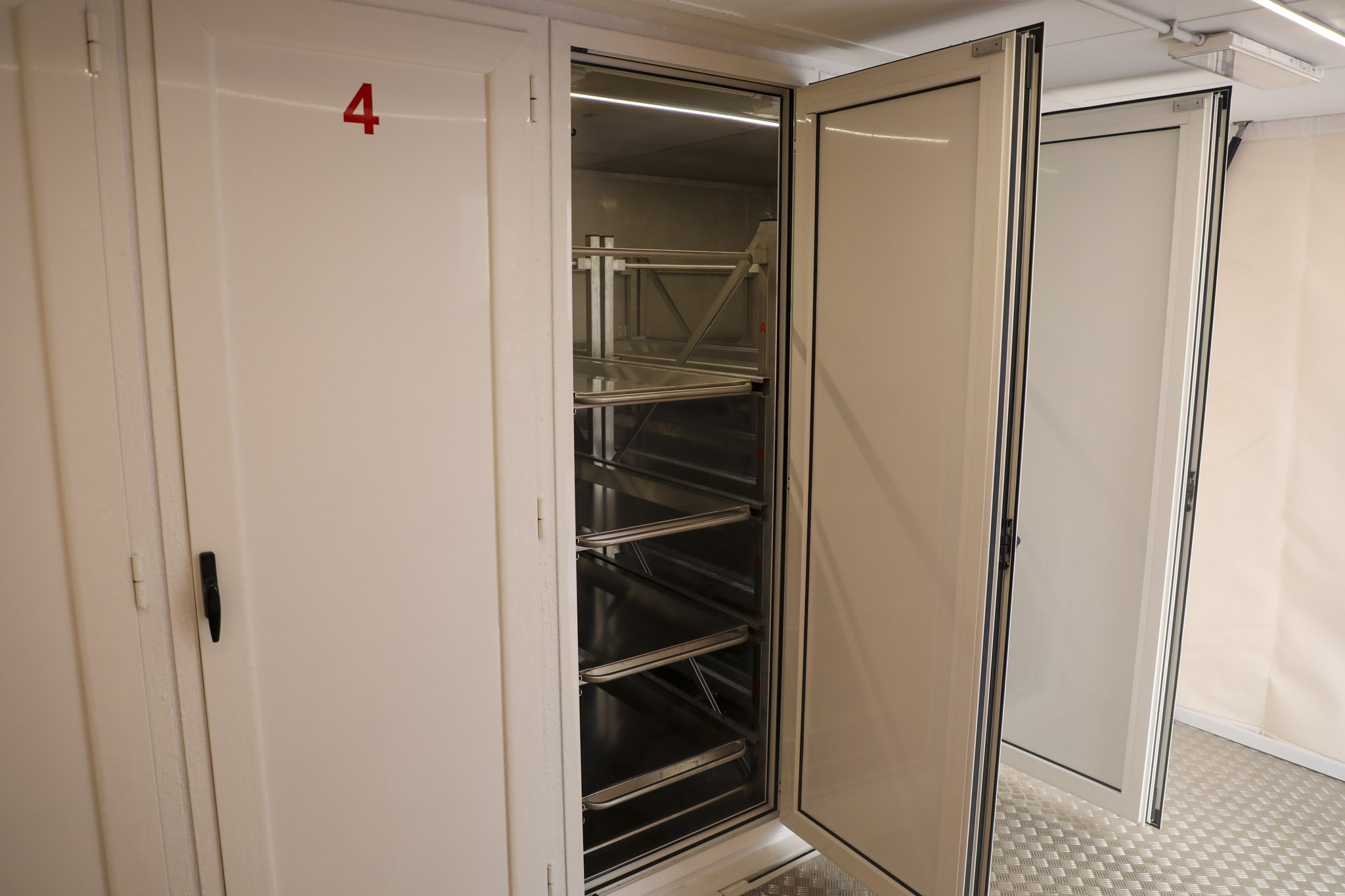 Il progetto, maturato alla luce dell’esperienza operativa acquisita soprattutto durante il Sisma del Centro Italia del 2016, prevede l’allestimento di un modulo campale completo e logisticamente autonomo, con una capacità massima di 114 salme. La struttura, conforme alle linee guida INTERPOL in materia di Field-DVI e condivisa con il Dipartimento della Protezione Civile, adotta un flusso unidirezionale di movimentazione delle salme, garantendo sicurezza, riservatezza e pieno rispetto della dignità delle vittime. Il modulo campale della Croce Rossa Italiana dedicato alle attività di DVI (Disaster Victim Identification) si articola in tre moduli funzionali integrati che comprendono le fasi di accettazione delle salme, le attività di analisi necroscopico-forense e la successiva conservazione e identificazione, inclusa la gestione dei flussi informativi. Tutte le attività vengono coordinate tramite un Posto di Comando Avanzato al fine di garantire una gestione logistica efficiente, il collegamento con le Sale Operative Nazionali, sicurezza, privacy e pieno rispetto della dignità delle vittime.