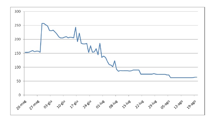 Le presenza giornaliere Il grafico mostra l’andamento delle presenze giornaliere dal 20 Maggio ad oggi