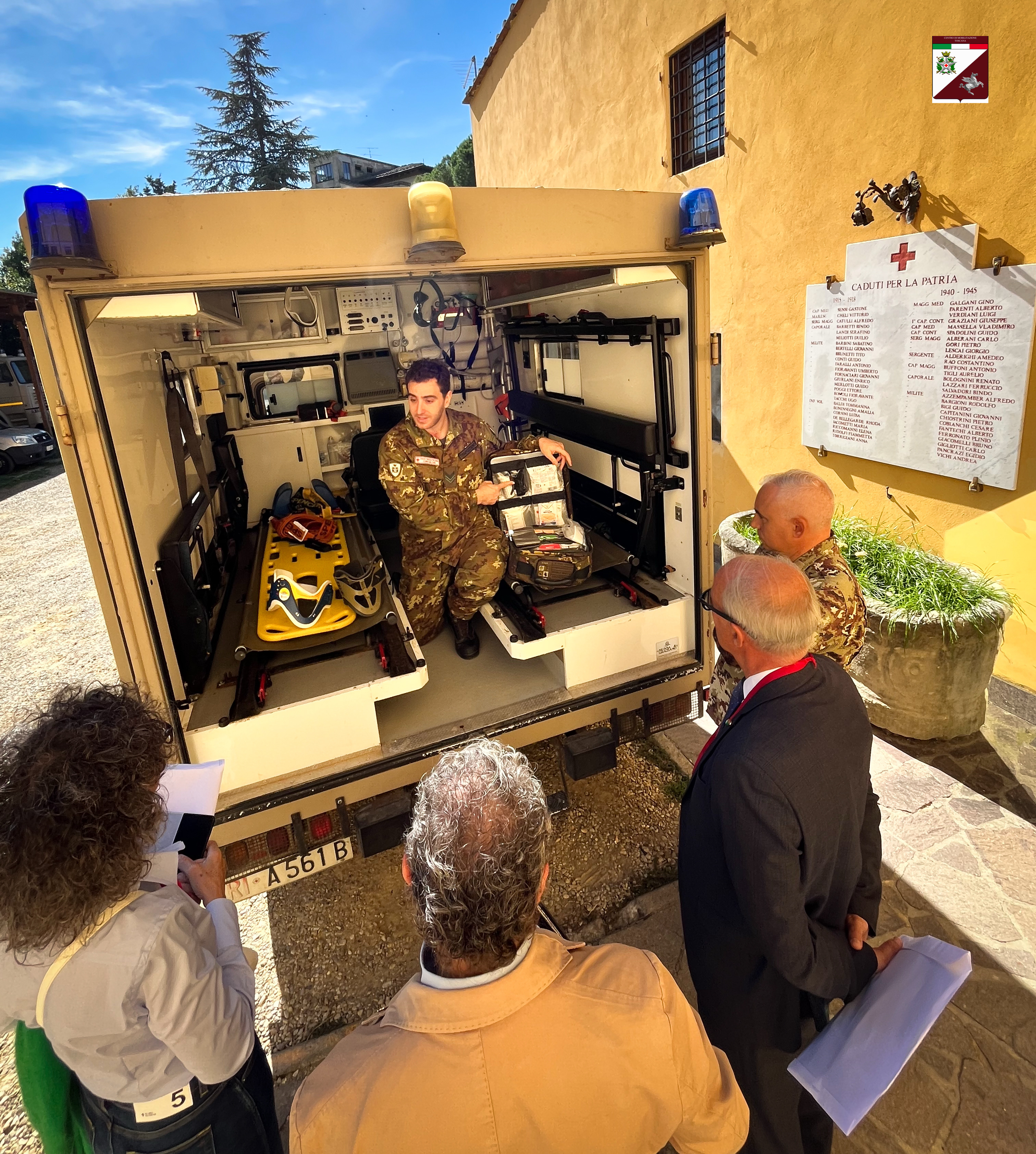 Il Presidente Regionale della Toscana dell’Unione degli Insigniti dell’Ordine al Merito della Repubblica Italiana, accompagnato da una delegazione , in visita al Centro di Mobilitazione Toscana del Corpo Militare Volontario della CRI